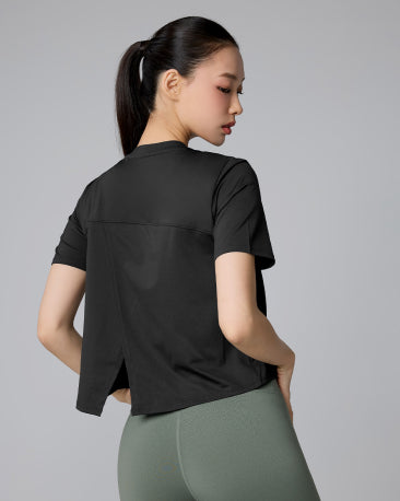 Ice Feather Back Slit Cropped Short Sleeve