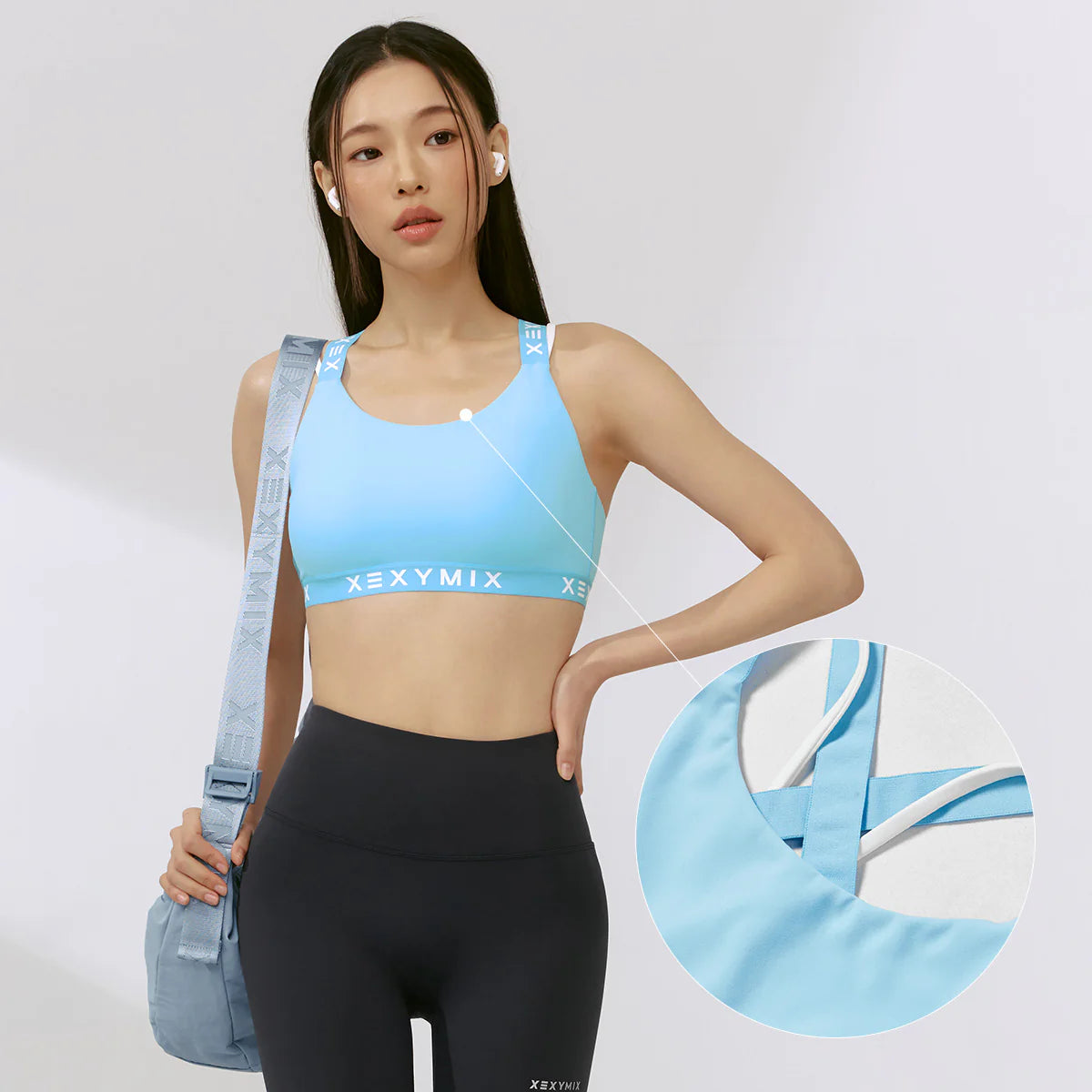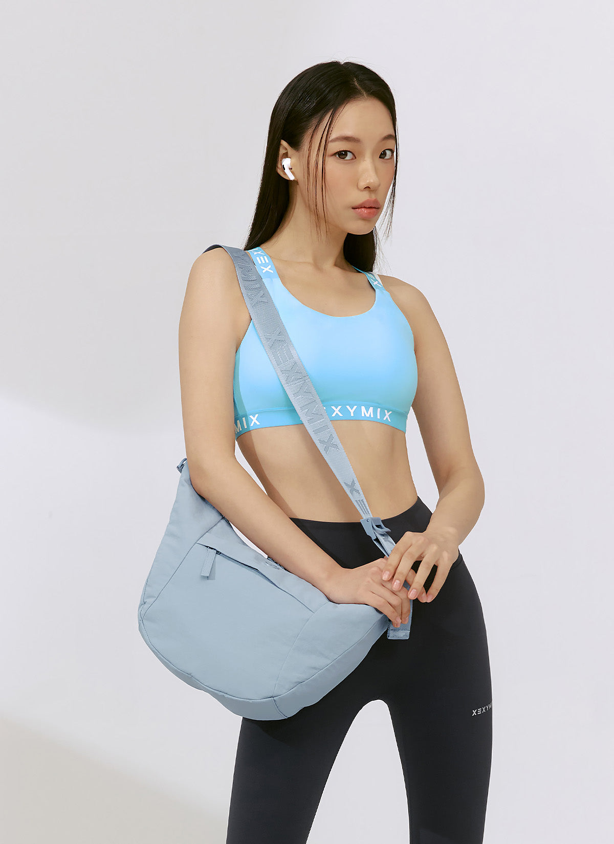 Featuring branded jacquard logo bands on the hem and crisscross shoulder straps, this design not only adds sporty flair but also keeps everything securely in place.