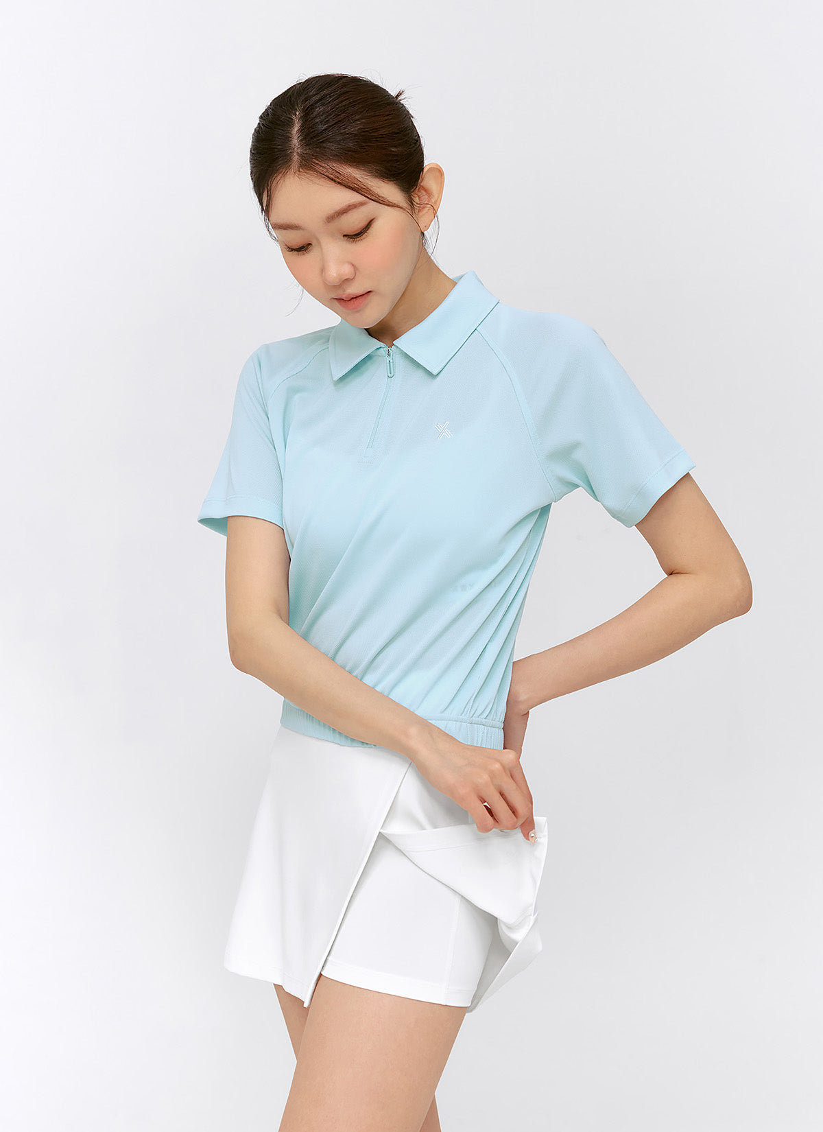 The front features a diagonal overlap detail that creates a natural slit, enhancing mobility while adding a sophisticated touch to the overall look.
