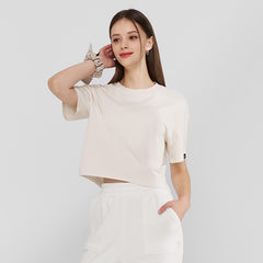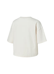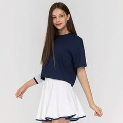 The relaxed round neckline provides a comfortable fit without any sense of tightness, While the inner seam is encased with the same fabric to prevent stretching.