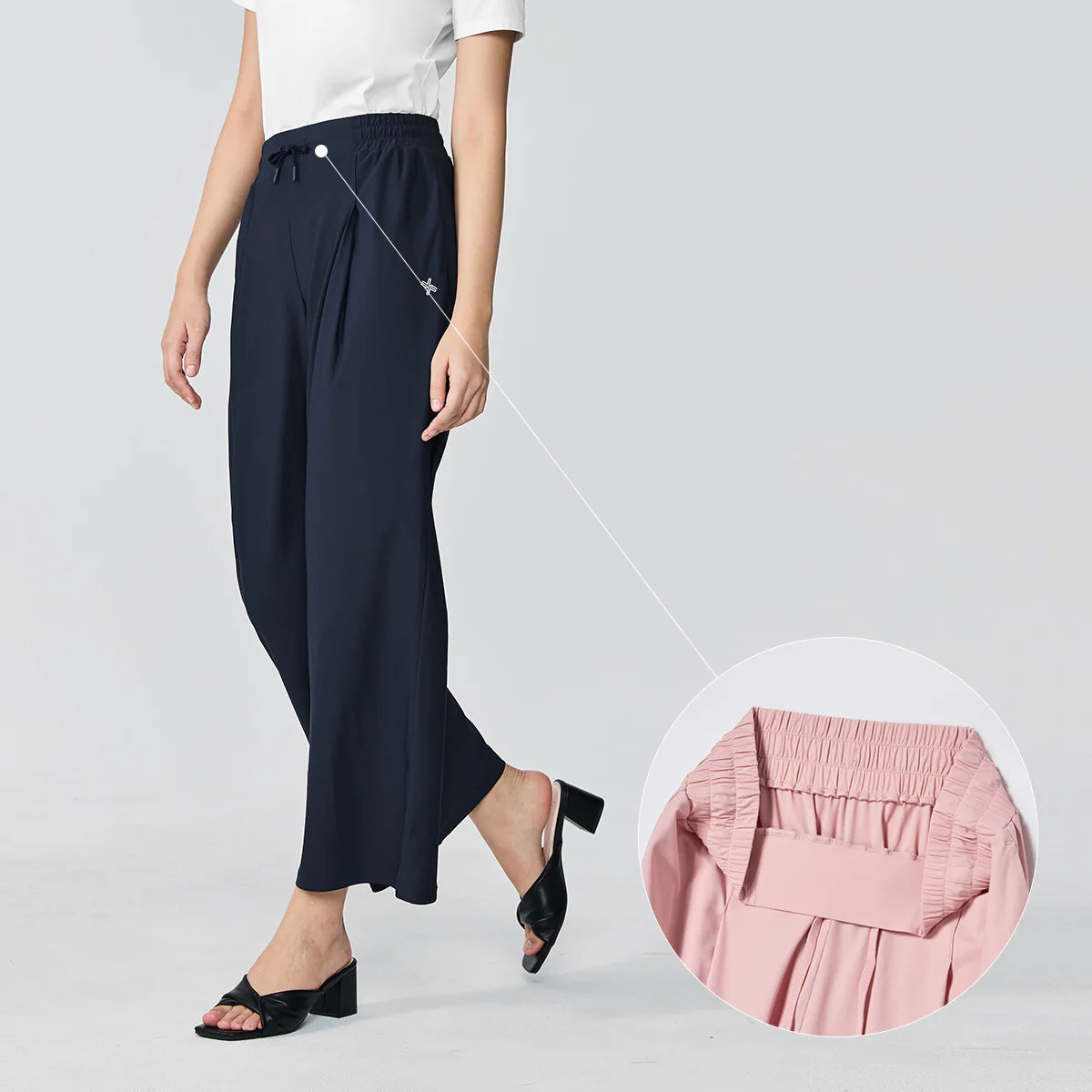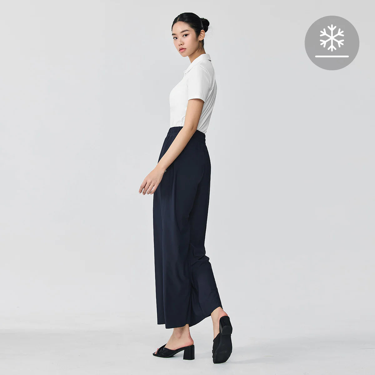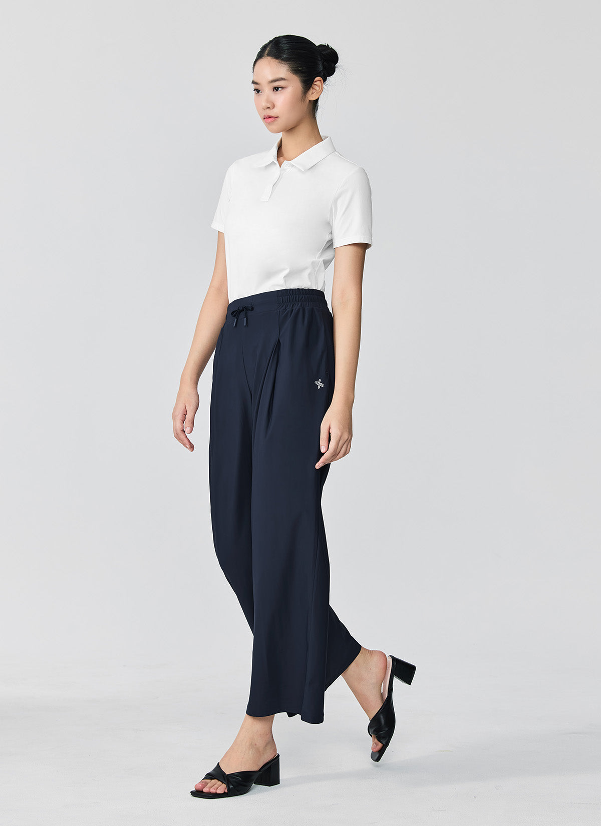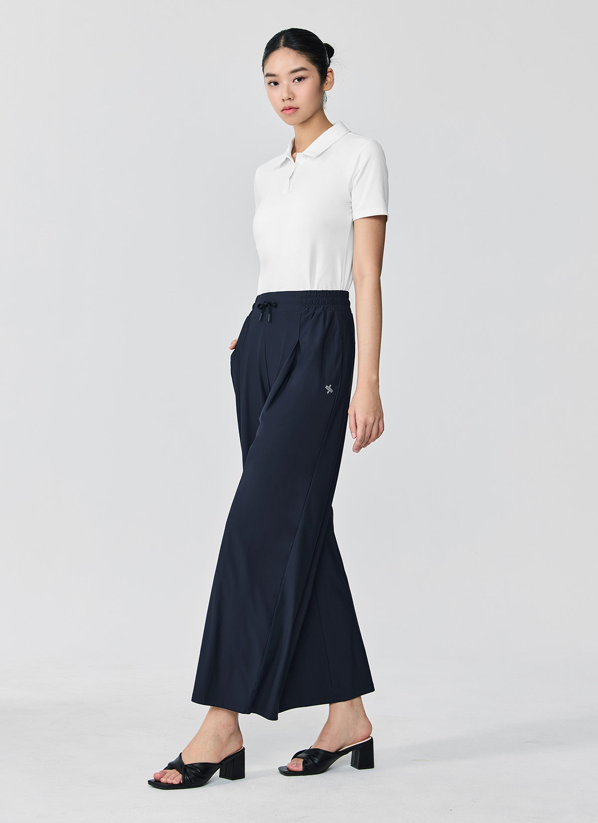 Front pintuck detailing lends a refined, sophisticated mood while giving the wide-leg silhouette a slimmer, more structured look.
