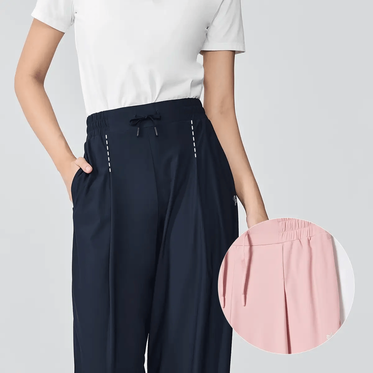 An elastic waistband combined with an adjustable drawstring allows for a custom fit that flatters various body shapes.