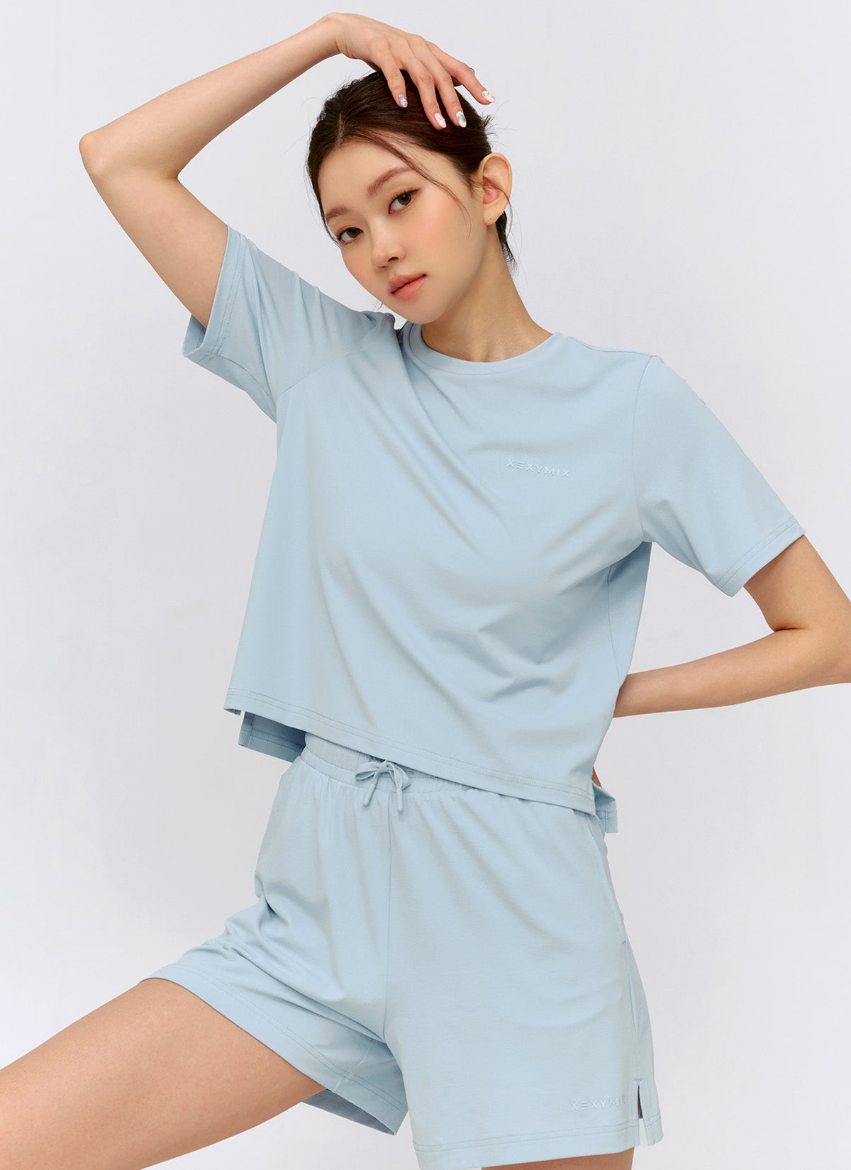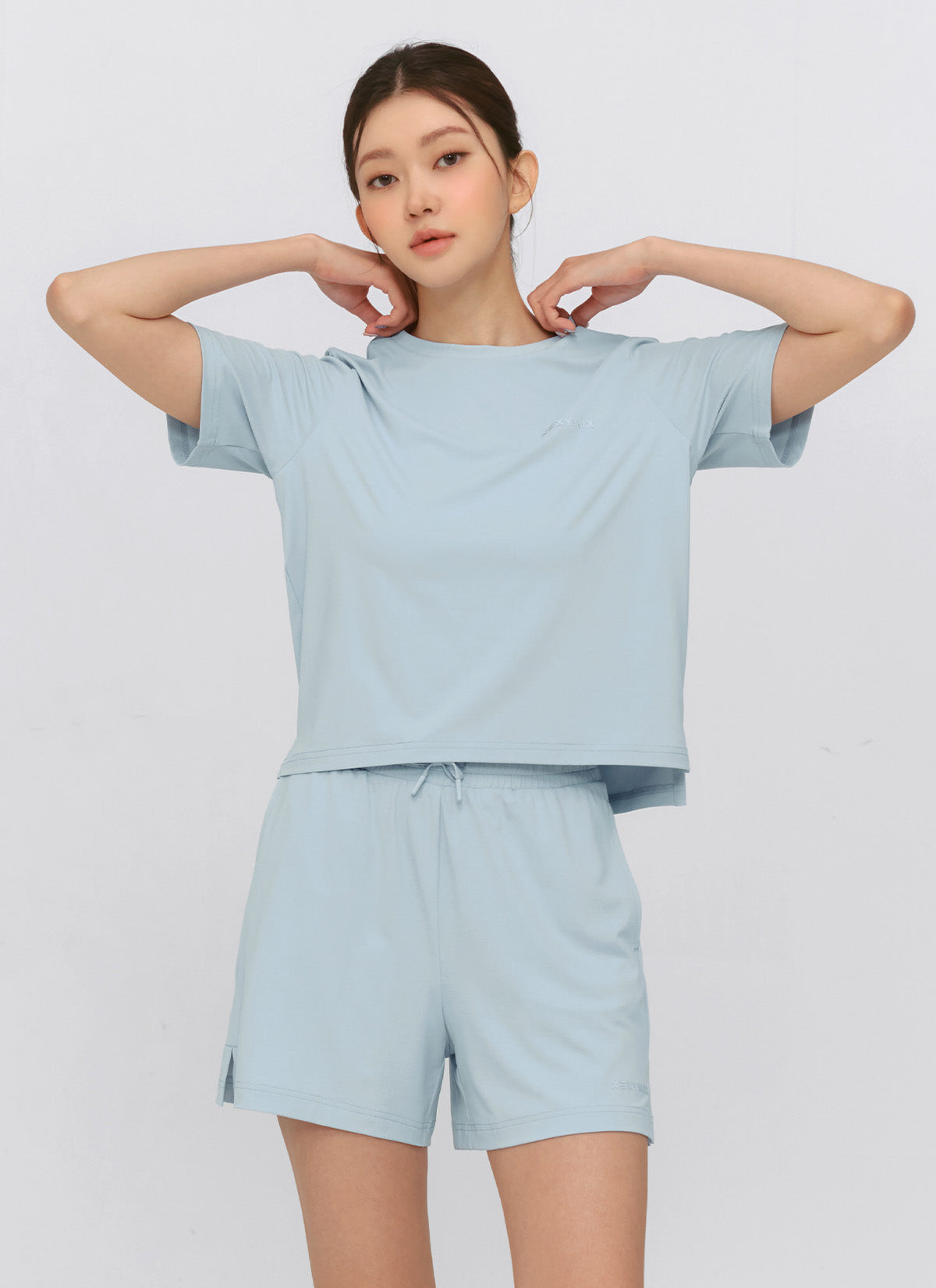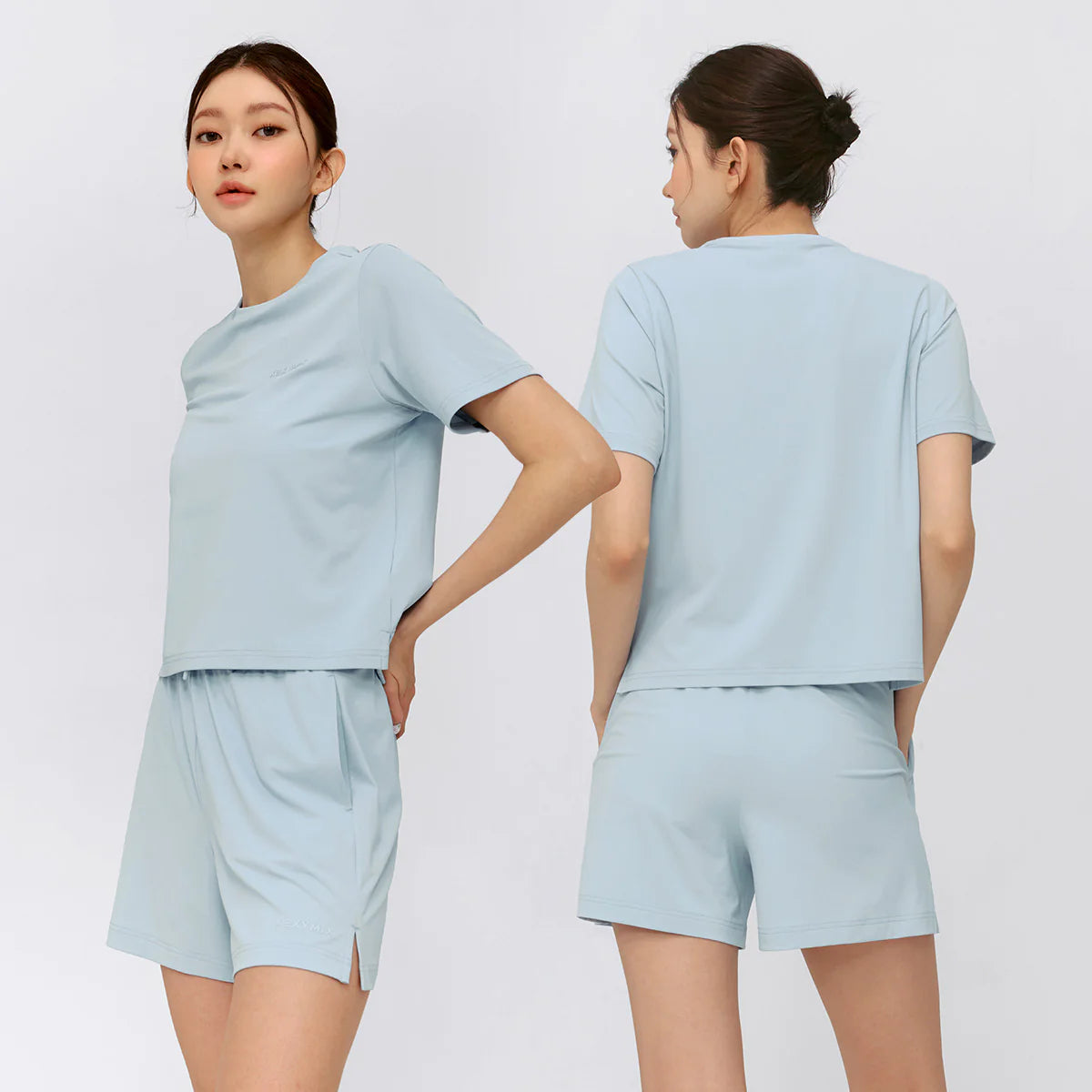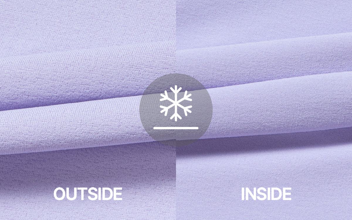 Made with a blend of Askin yarn, featuring a unique cross-sectional structure that increases the surface area in contact with the skin—quickly drawing away body heat for a cooling sensation.
