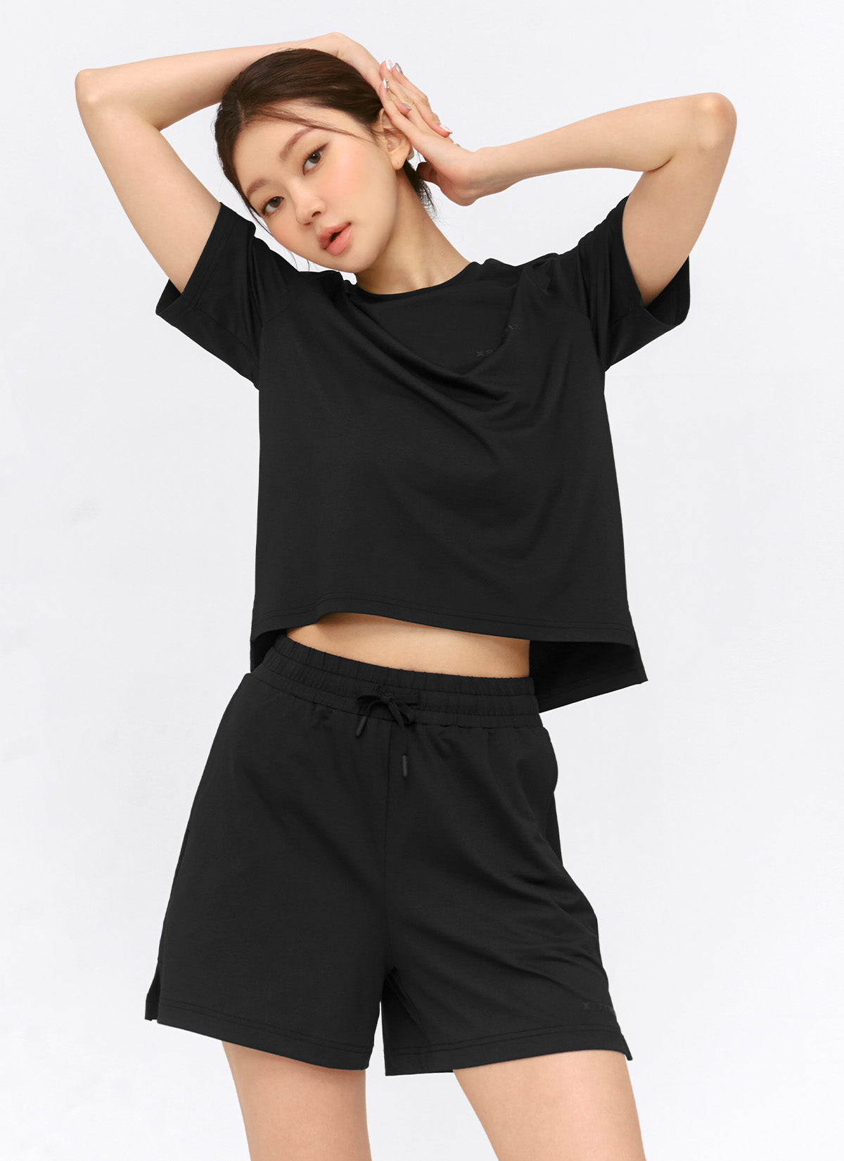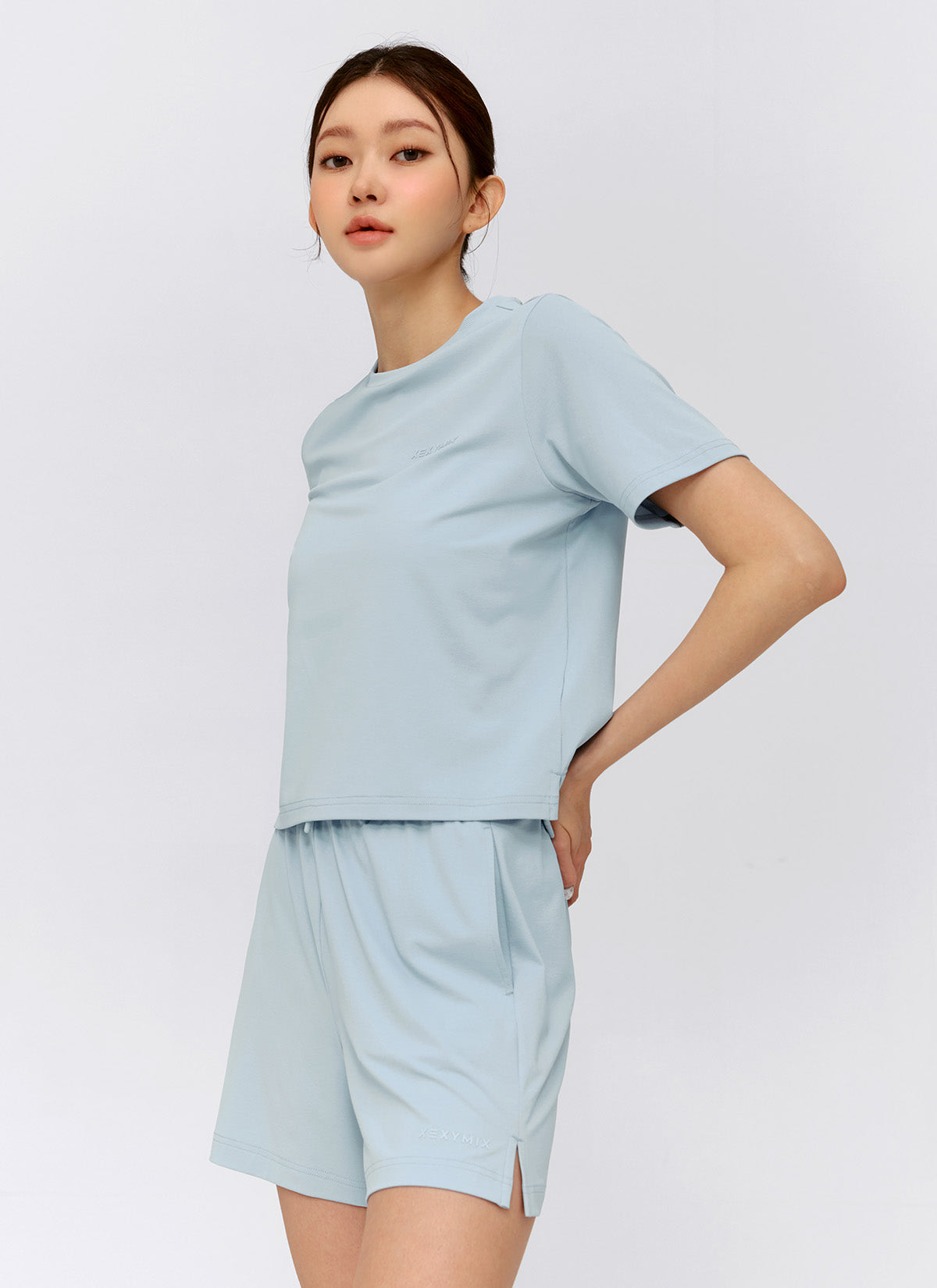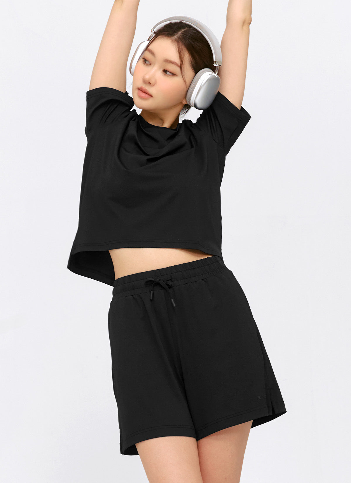 Made with a blend of Askin yarn, featuring a unique cross-sectional structure that increases the surface area in contact with the skin—quickly drawing away body heat for a cooling sensation.