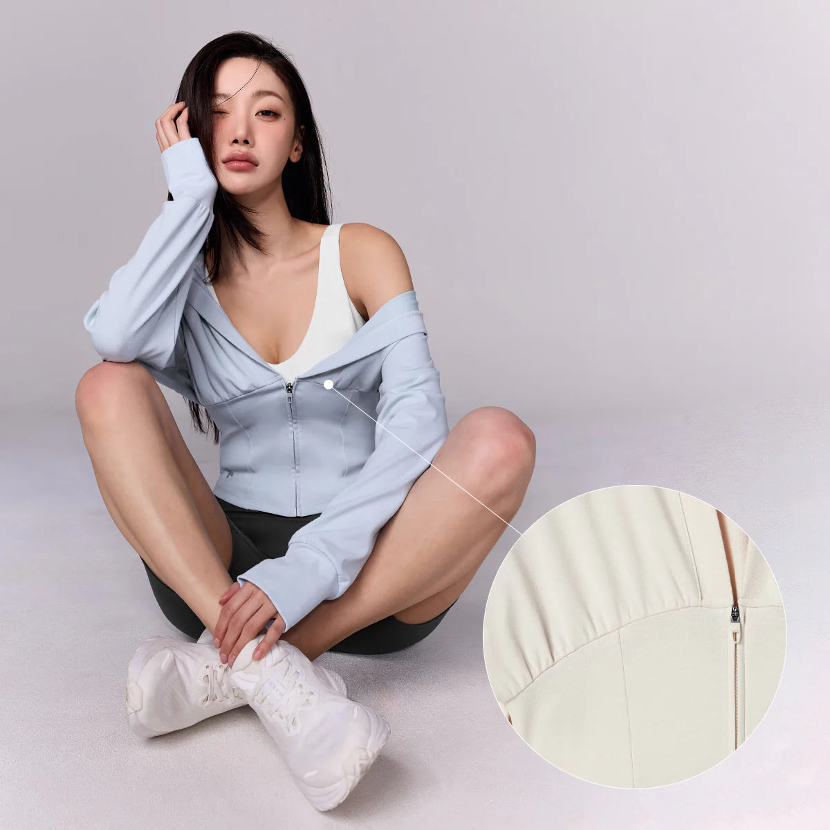 Deep V-Neck Hood Zip-up