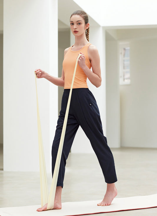 A wide range of firm ribbed tissue is applied to the bottom of the bra for various upper-body movements. It provides stable support without rolling up even when performing exercises.