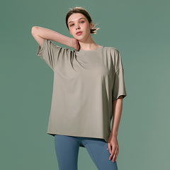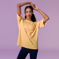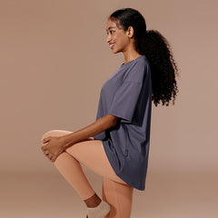 If you usually feel uncomfortable wearing leggings alone,try wearing them with the Ice Feather Overfit T-shirt. It will complete the burden-free leggings styling.