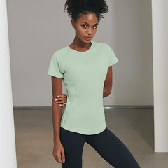 It looks slimmer by sewing princess line stitches. Four-way stretch fabric offers Low-impact, ideal for yoga and light sports.