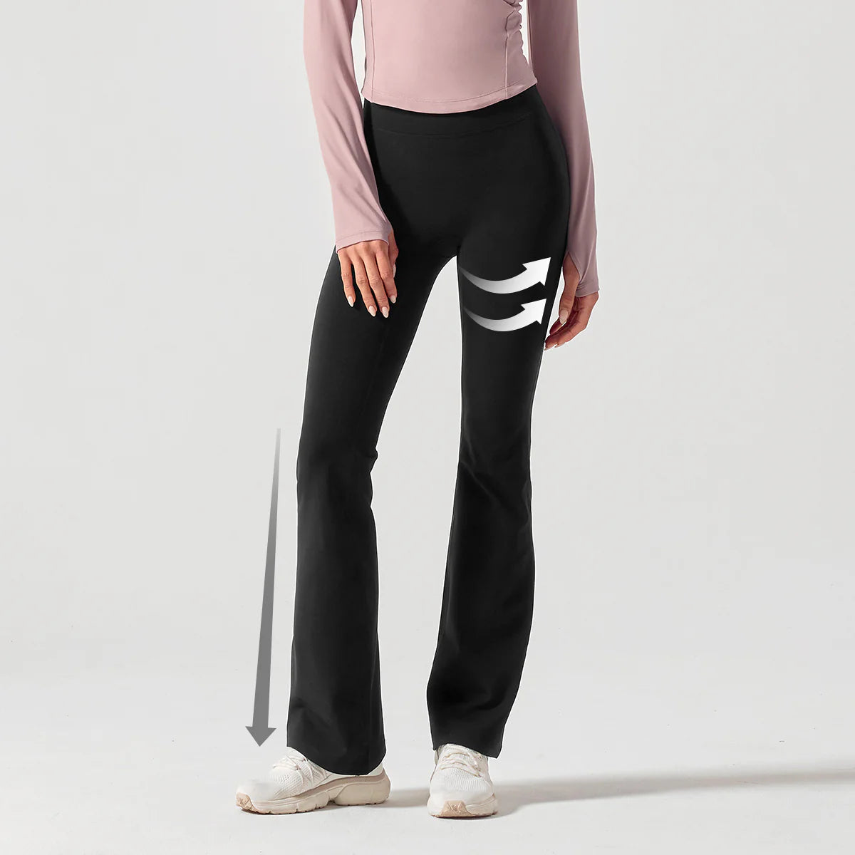 Slim through the thighs with a subtle flare from the knees down, creating a sleek, elongating effect without emphasizing the calves.