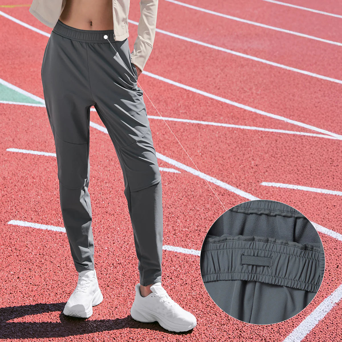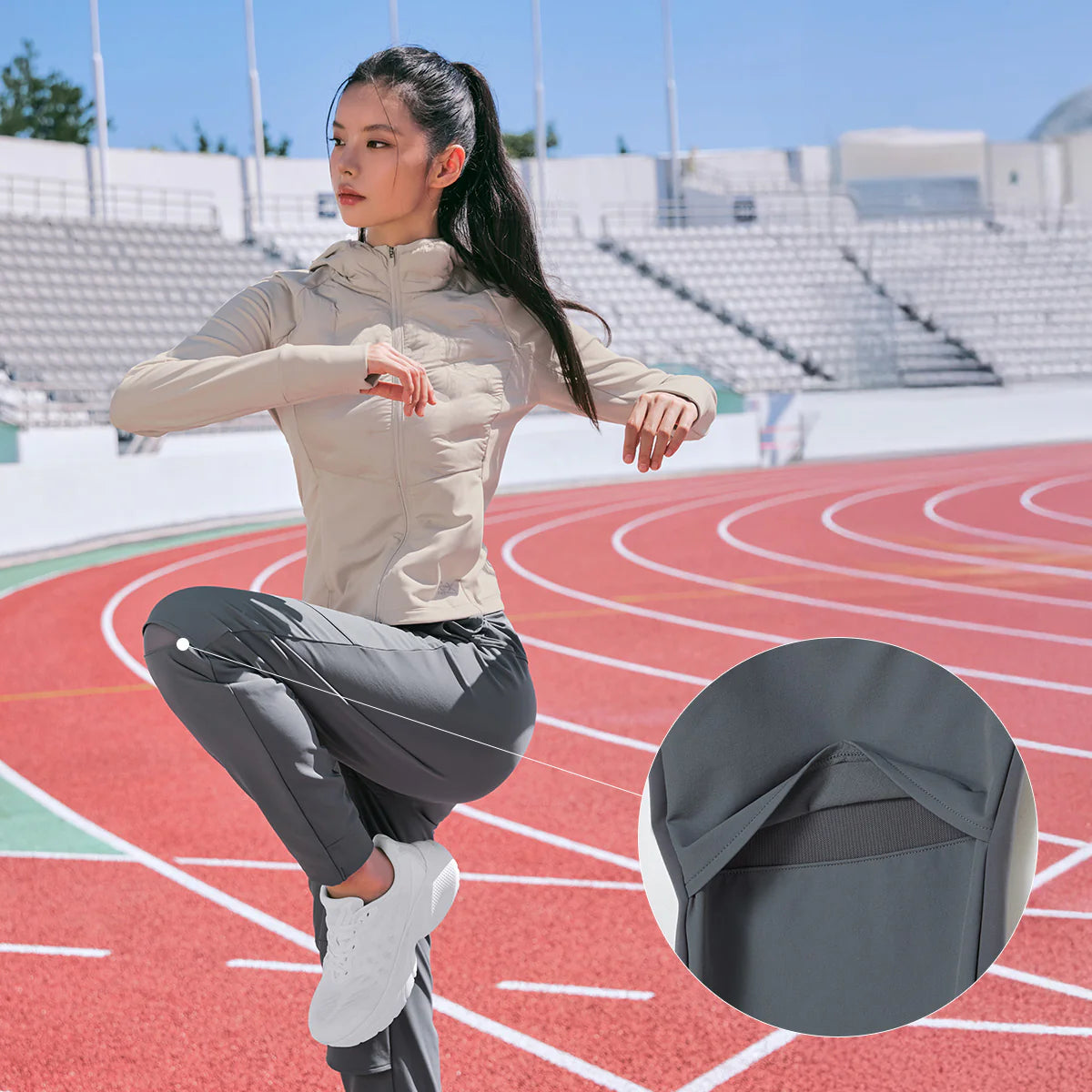 Ventilation details at the knees enhance breathability and maximize mobility during running or active movement.