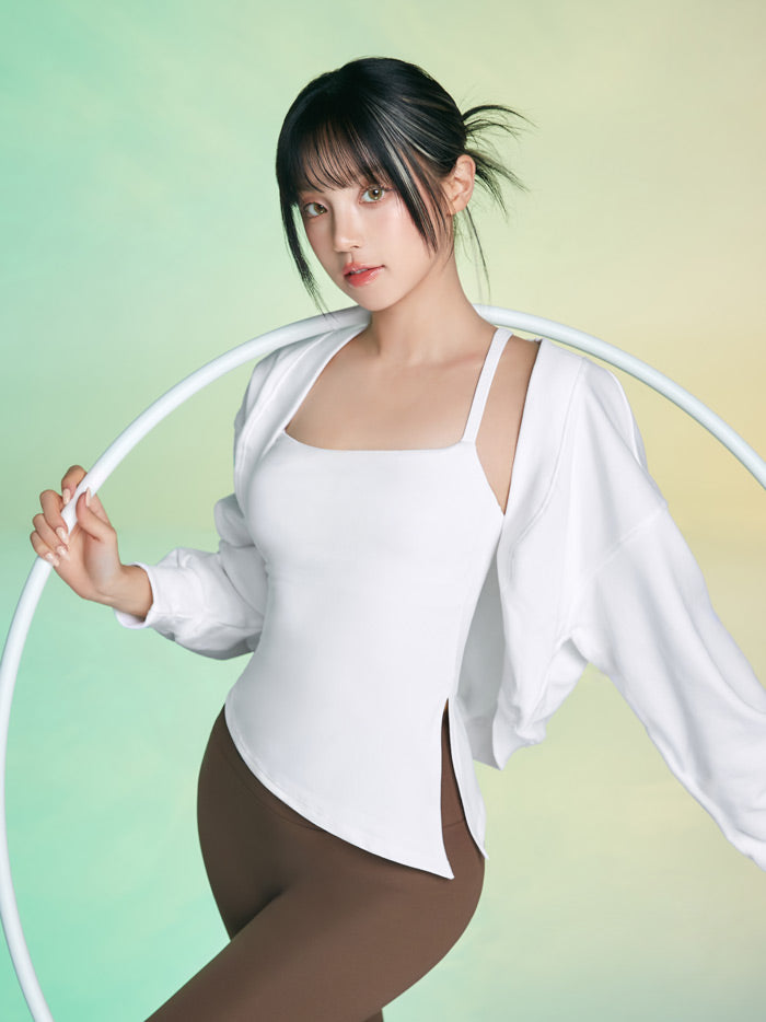 A deep slit is placed on the left side to increase activity, and you can naturally tie or untie it to create a two-way styling.