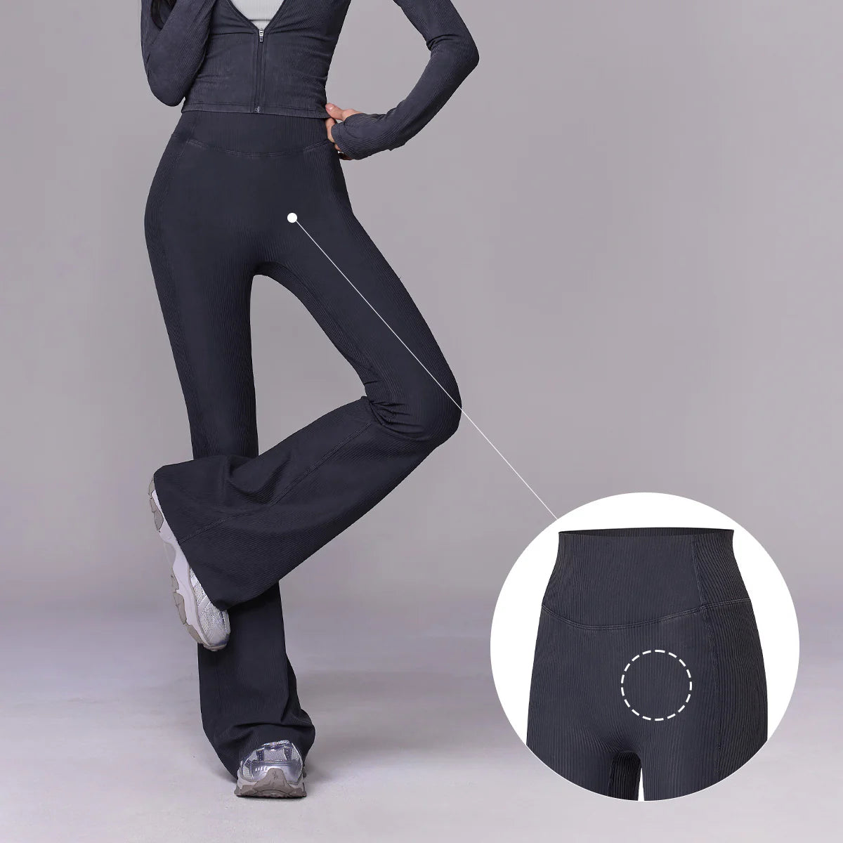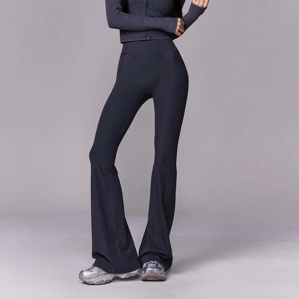 The high-rise design sits above the navel, elongating the legs and creating a flattering, well-balanced silhouette.