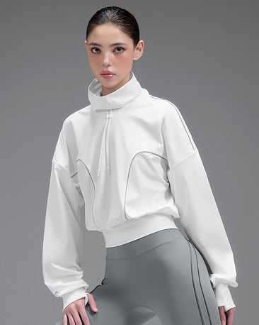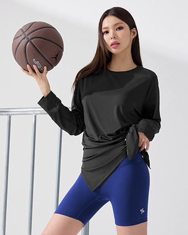 Unbalanced Neck Shirring Long Sleeve