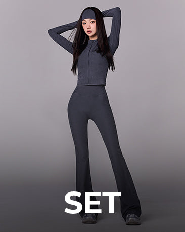 [SET] Washing Ribbed Slim Fit Zip-up Jacket + Bootscut Leggigns