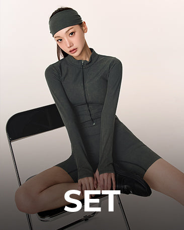 [SET] Washing Ribbed Slim Fit Zip-up Jacket + 3.5" Leggings