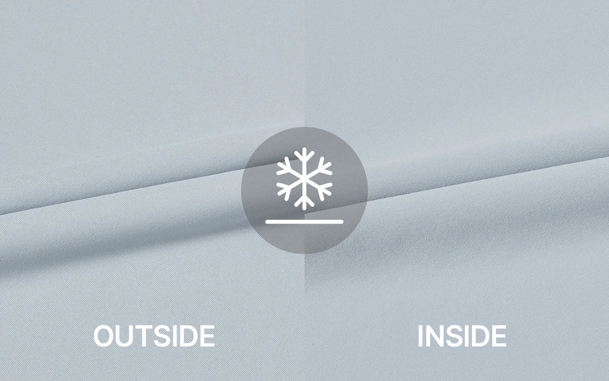 Made from a blend of Askin yarn with a unique cross-sectional structure, this fabric has a wider contact surface with the skin compared to regular fibers, allowing it to quickly absorb heat and provide a cool touch.