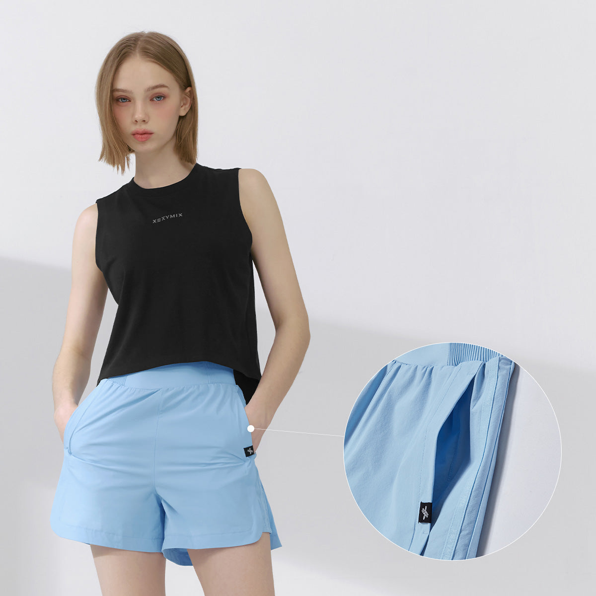 Cut lines and pocket details on the side line provide stable support for the thigh muscles. At the same time, you can store simple belongings.