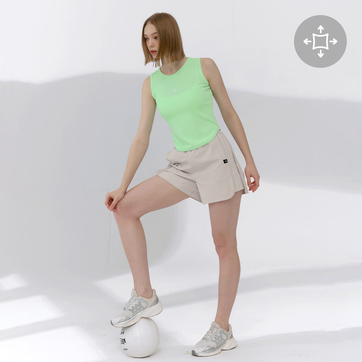 The double color line that matches the color of the shorts is added to the side panel to made a sporty mood.