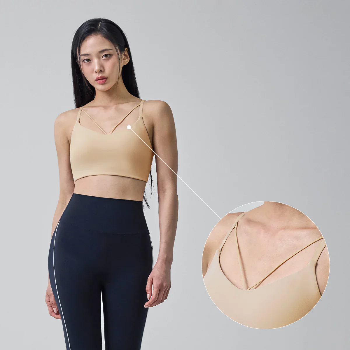 The naturally curved heart-shaped neckline is accented with a V-shaped strap, highlighting the neckline and collarbone for a slim, feminine silhouette.