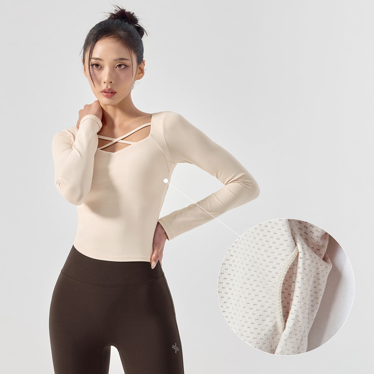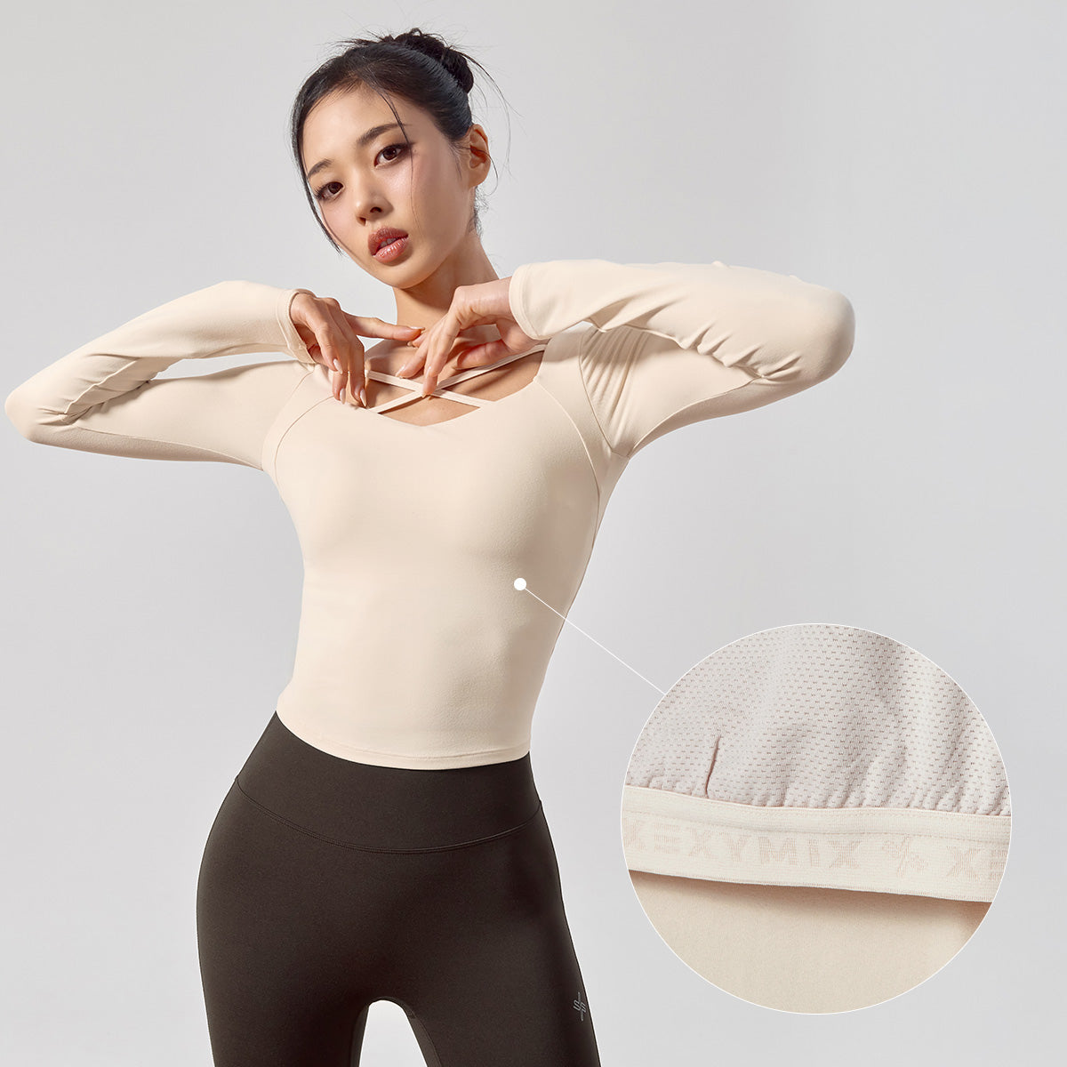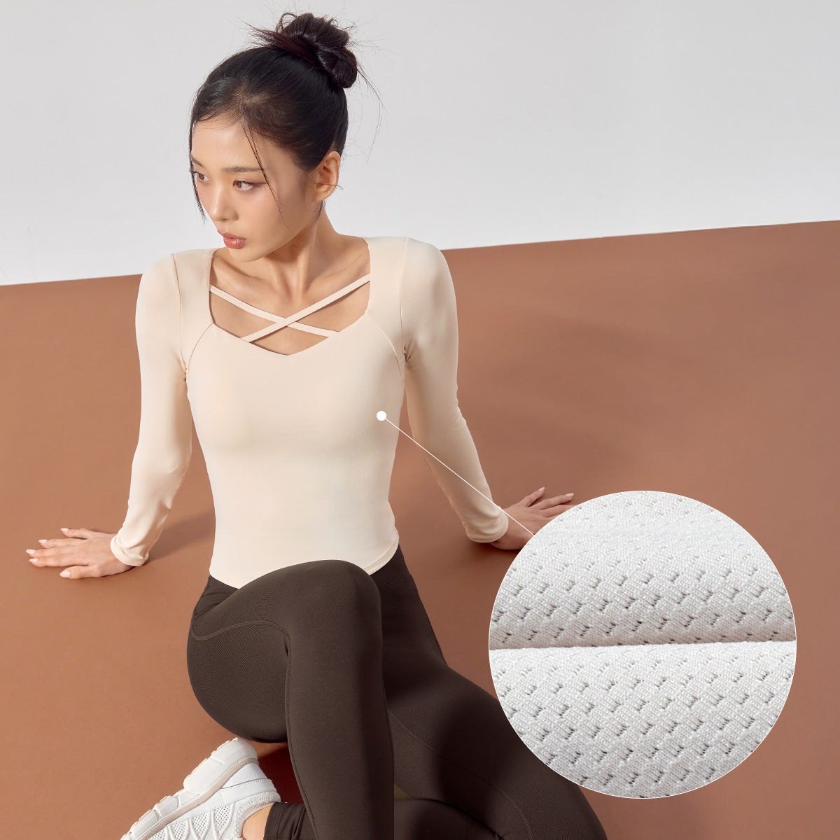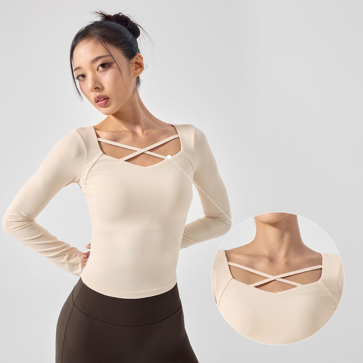 The heart-shaped neckline and crossed back straps ensure a secure fit that moves with you, while highlighting the collarbone for a graceful finish.