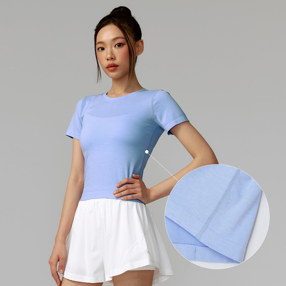 Seamless knitting with minimal stitching delivers exceptional comfort and a soft feel against the skin, while its flexible stretch ensures a perfect fit.