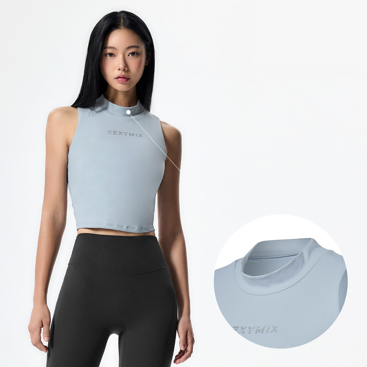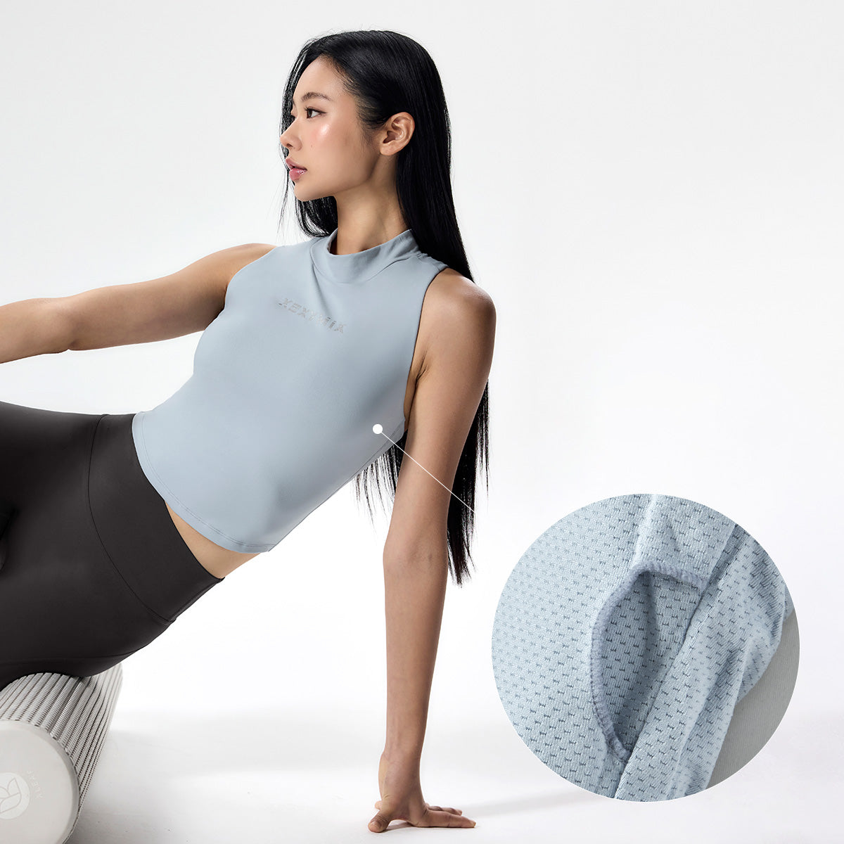 Mobilon tape is embedded along the entire armhole line to ensure a secure, stay-put fit even during active movement.