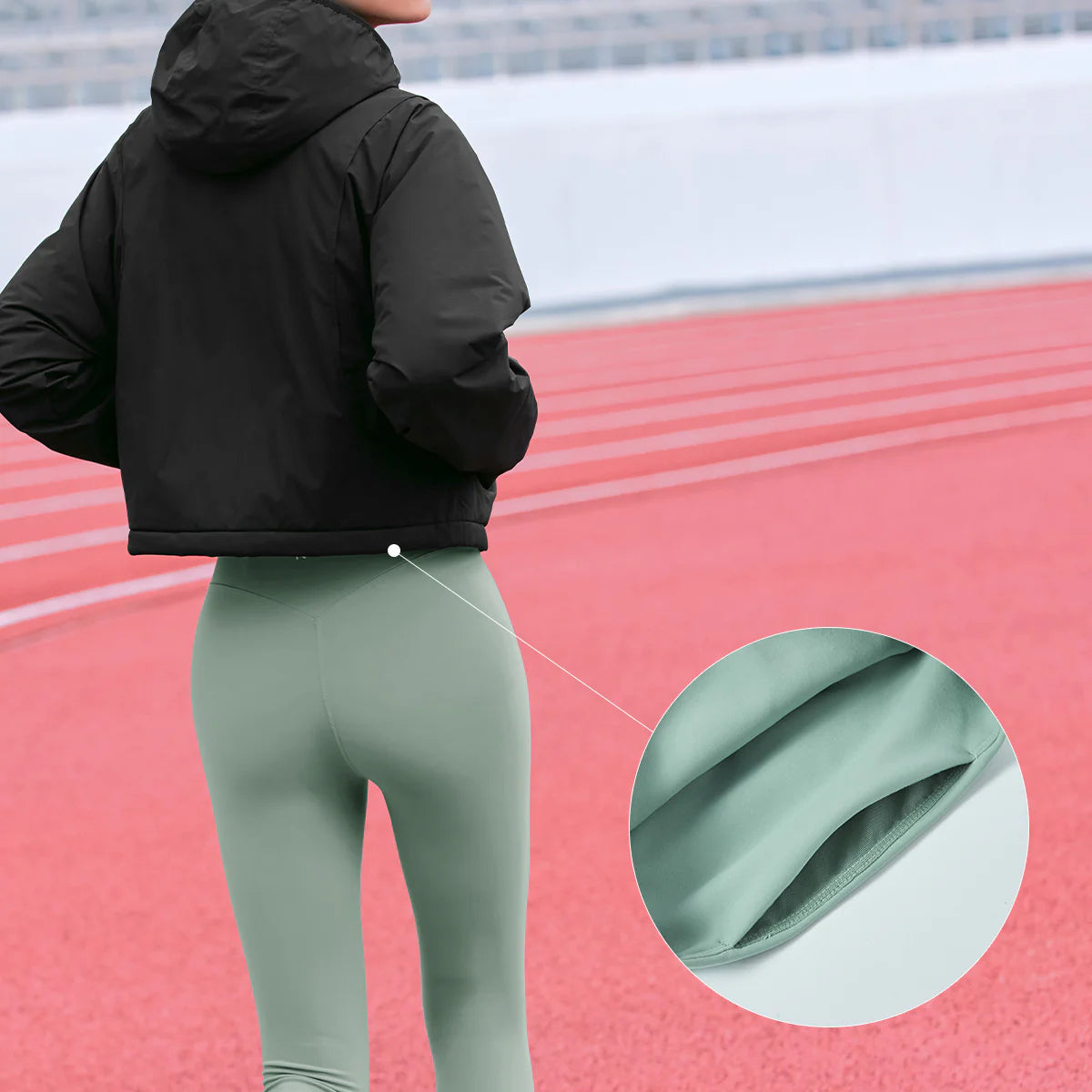 Designed without a front center seam to eliminate unnecessary emphasis and deliver a sleek, comfortable fit—perfect for pairing with cropped tops.