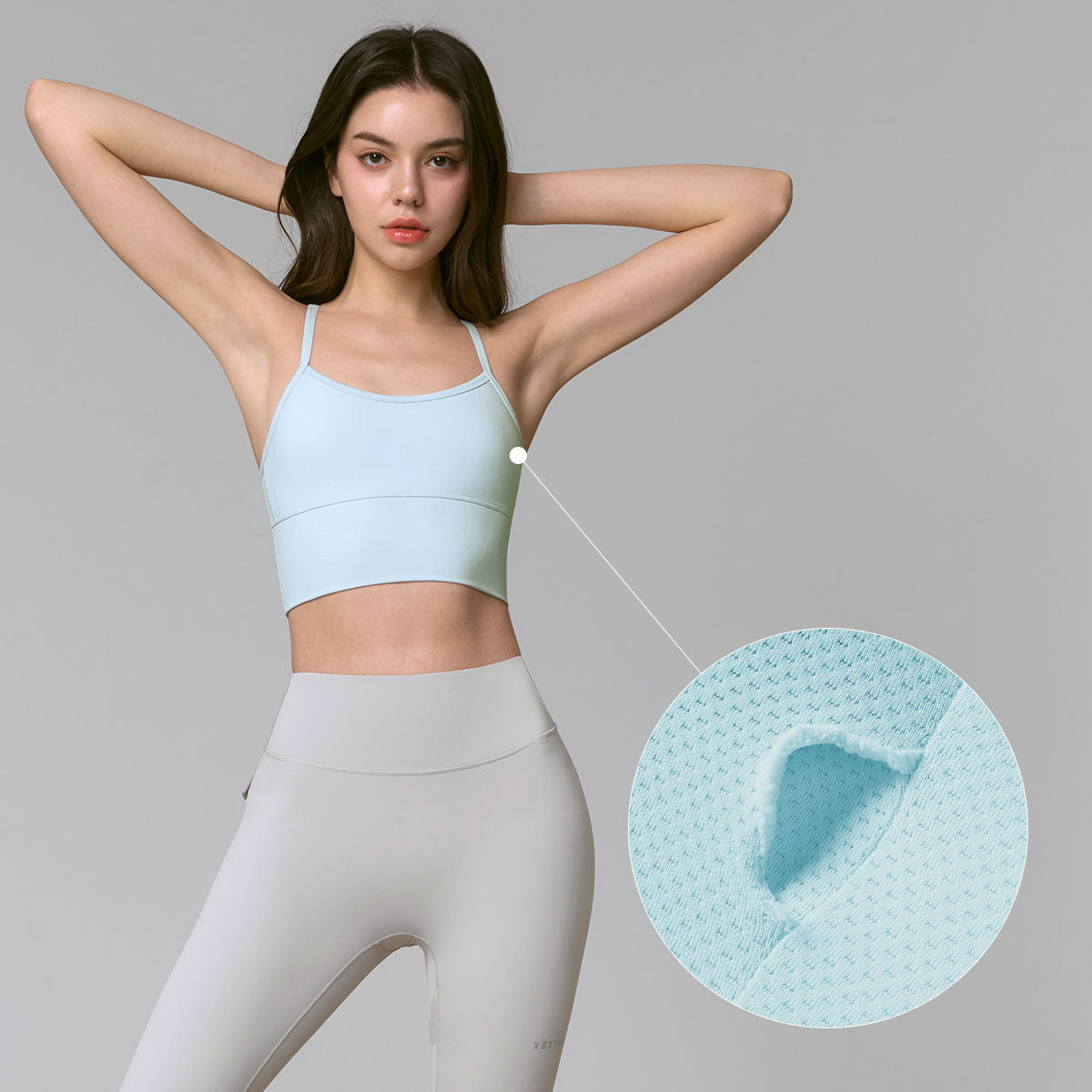 從背部線條交叉成X字形的帶子不會壓迫雙鎖骨,因此即使在舉起手臂或進行主動動作時也能幫助您舒適地移動。