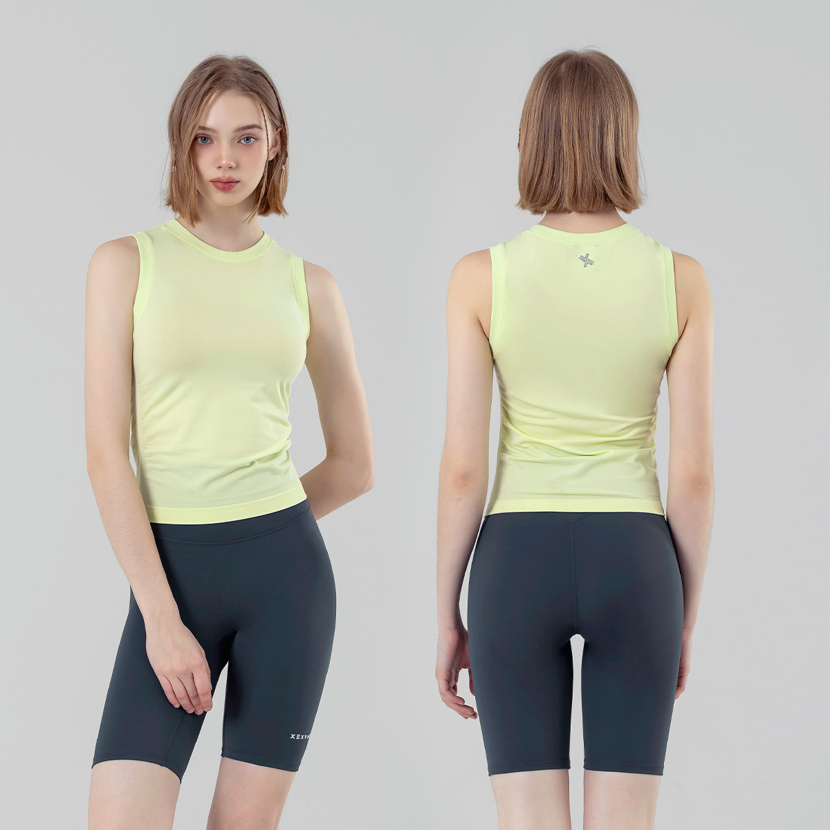 The semi-cropped length subtly covers the waistline, reducing exposure when paired with leggings or joggers while creating the illusion of longer legs.